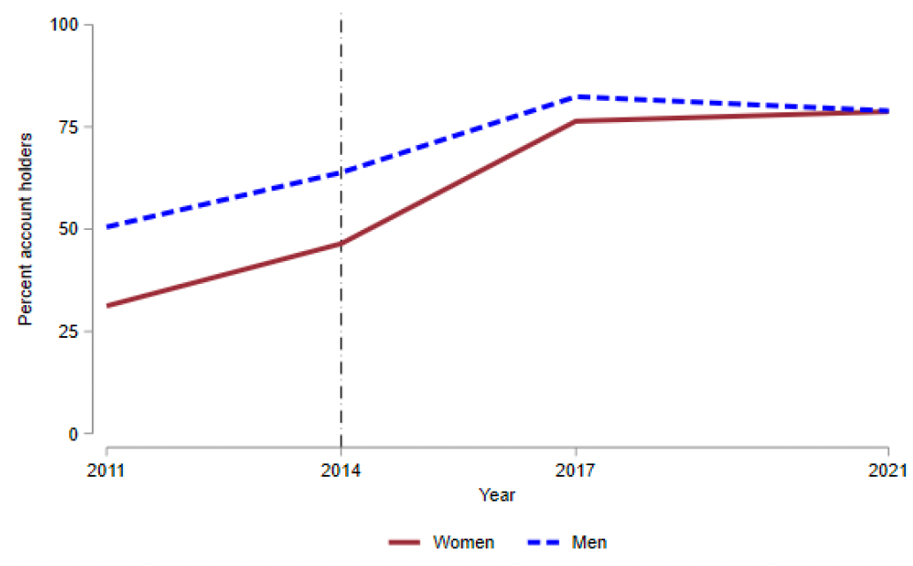 In 2014 India required banks to offer no-cost accounts. This led hundreds of millions of people to open bank accounts for the first time, and more than doubled the number of Indian women who had a bank account: