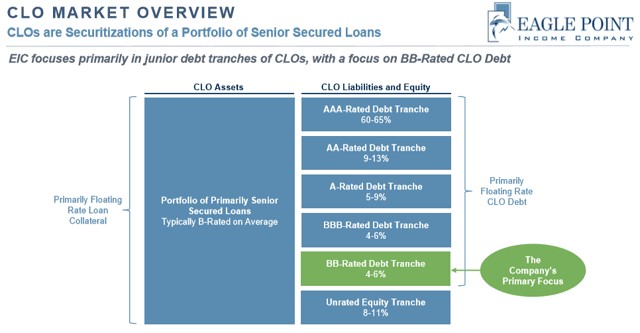 The figure below from an Eagle Point Investment Company presentation depicts typical CLO tranches:
