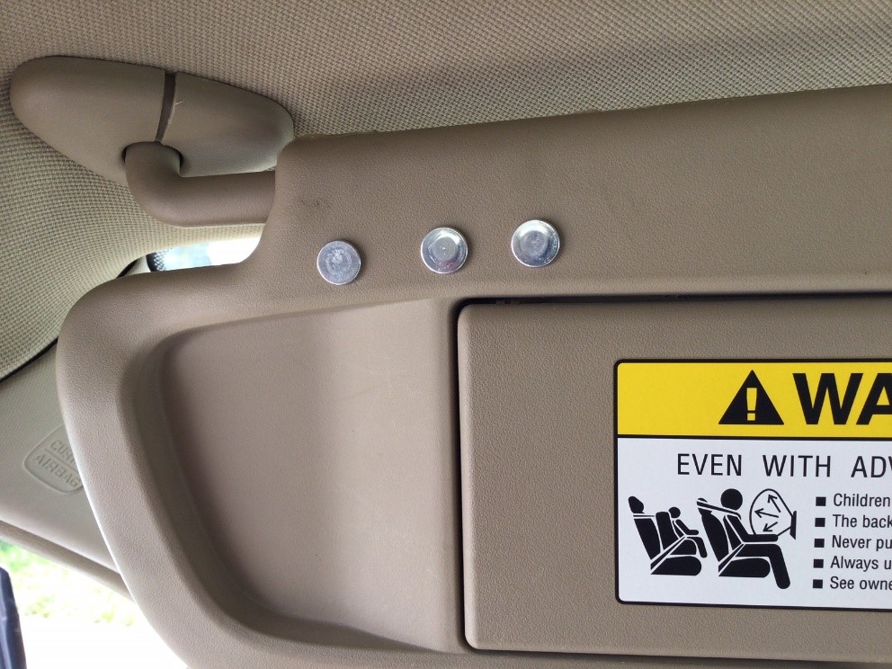 Two more anecdotes along these lines, both of which deal with my 2007 Honda. That car has spent many years baking in the hot sun, and some interior parts have let go. First, the visor in front of the driver would no longer remain in the flipped-up position – – it sagged down, partly obscuring my view. The adhesive holding the two halves of the visor together had failed from the heat, and so the visor had lost its grip on the metal rod sticking into it.