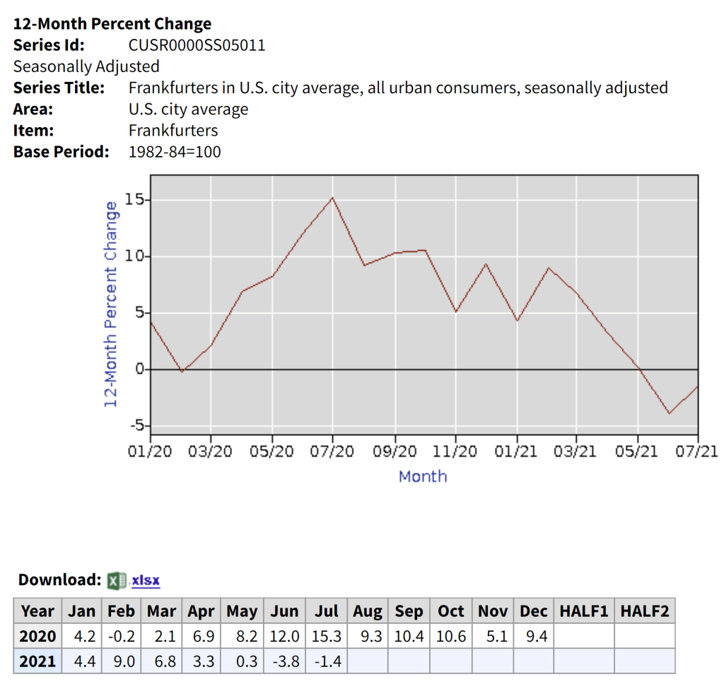 The actual data? Hot dog prices declined by 1.4% compared with last July.