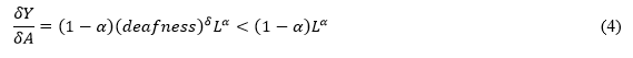 On the right most side of equations (4) and (5) is the marginal product of additional human capital for hearing people. As it turns out, equations (1) and (2) provide different predictions for how attractive human capital investments will be for the deaf relative to the hearing. If equation (1) is more reflective of the real world, then the deaf will pursue less education and training than the hearing. If equation (2) is more reflective of the real world, then the deaf will pursue more education and training than the hearing.