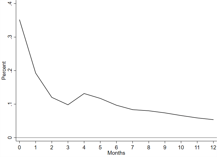 Essentially, the figure is telling us something about concavity. If there is a surprise acceleration in the rate of inflation, then we should expect that the change in inflation quickly becomes concave (rainbow shaped). After 3 months, the concavity oscillates and diminishes.