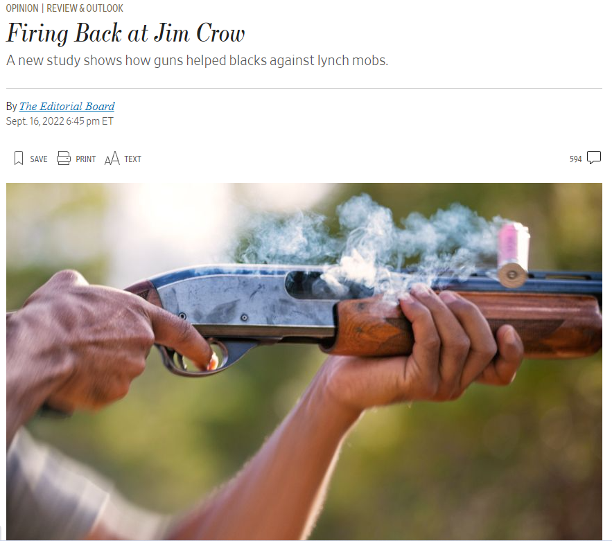 I was happy to see the Wall Street Journal write a staff editorial about my recent paper with Patrick Warren, “Firearms and Lynching“.