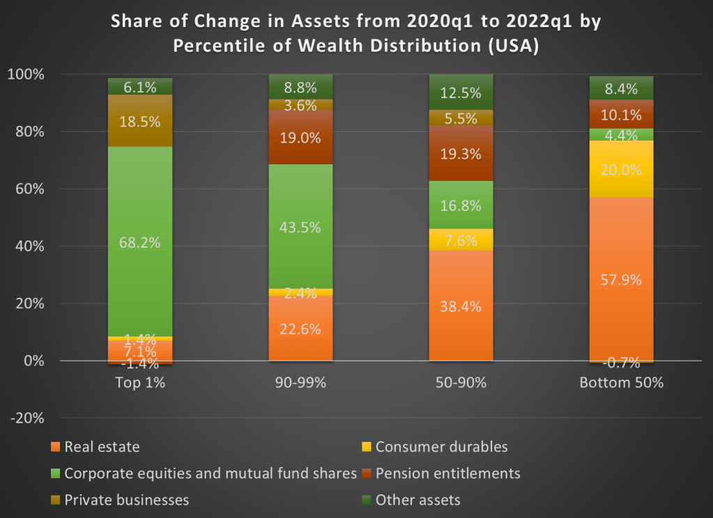 Finally, what about the other parts of the income distribution above the 50th percentile? What asset classes contributed the most to their growth in wealth since the beginning of 2020? The chart below answers those questions.