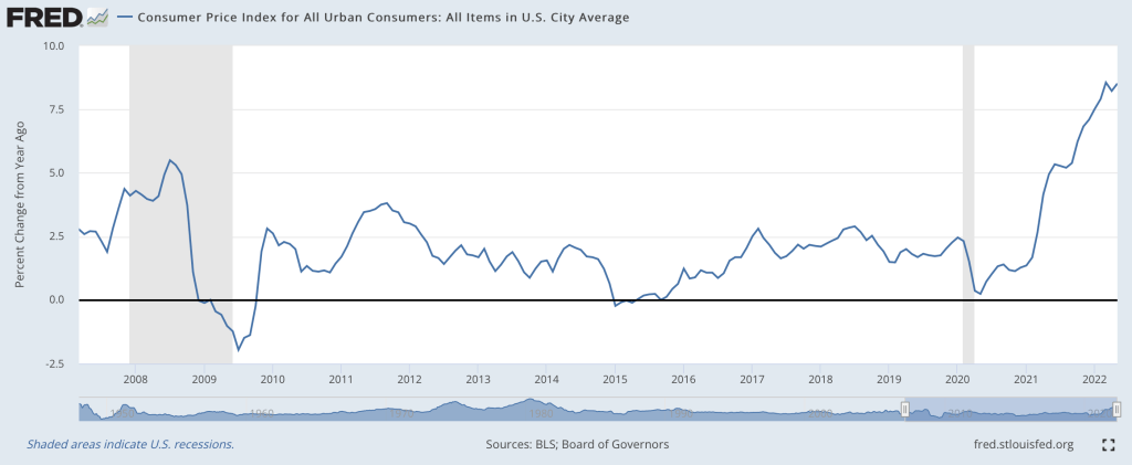 What am I still worried about? The Producer Price Index is still growing at 20%. The Fed is raising rates quickly now but their balance sheet is still over twice its pre-Covid level and is shrinking very slowly. The Russia-Ukraine war drags on, keeping oil and gas prices high, and we likely still have yet to see its full impact on food prices. Making good predictions is hard.