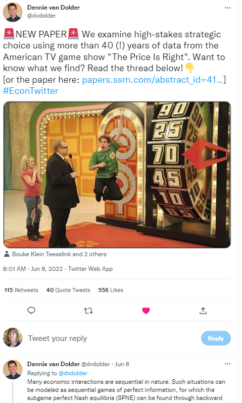 🚨NEW PAPER🚨 We examine high-stakes strategic choice using more than 40 (!) years of data from the American TV game show "The Price Is Right". Want to know what we find? Read the thread below!👇 [or the paper here: https://t.co/AKfYK3SDaC] #EconTwitterpic.twitter.com/TIhdE6QFqg