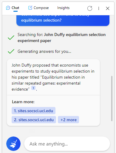 We wrote “ChatGPT Cites Economics Papers That Do Not Exist” I expect that problem to go away any day, so I gave it another try this week. For the record, they are currently calling it “ChatGPT Mar 23 Version” on … Continue reading Comparing ChatGPT and Bing for a research literature review in April 2023