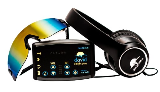 What has been shown to work well are systems where you don headphones for the sound and lightweight “goggles” (thin opaque glasses with LEDs on the inside). Studies have shown this to help with ADD, anxiety, depression, and migraines. Perhaps the most widely produced AVE devices are the “DAVID” models from MindAlive. MindAlive is headed by David Siever, who has spearheaded numerous studies of AVE.