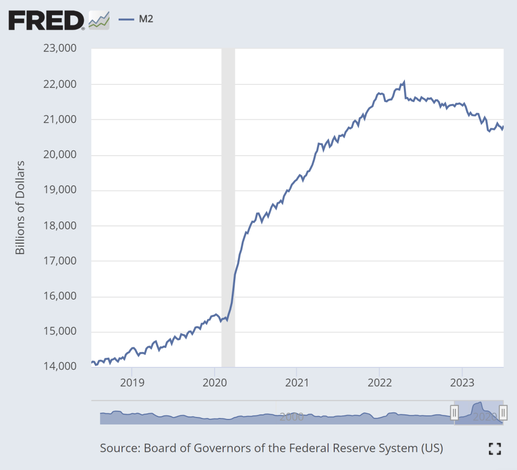 The second pessimistic chart is M2, a broad measure of the money supply.