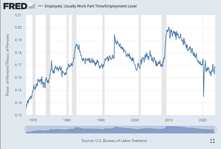 But it is a higher number than the past few years. Well, the main reason is that there were huge job losses among part-time workers during the early part of the pandemic. Once again, FRED is our friend:
