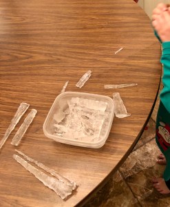 This is a joke for any readers in cold climates. My Alabama kids thought it was fun to collect icicles because they have almost never seen them before.
