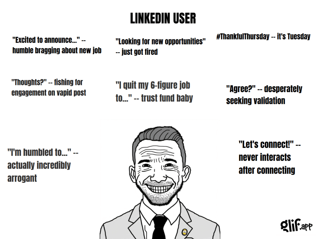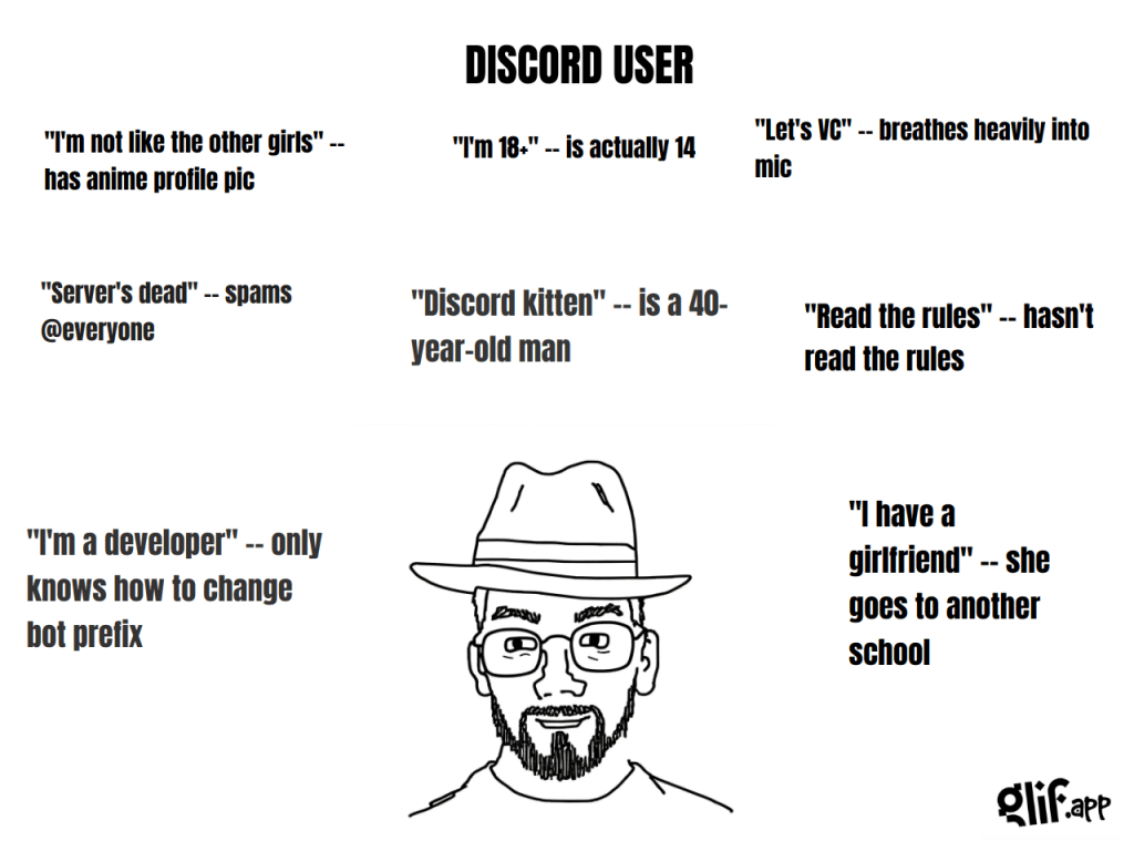 Here are GLIFs of the different social media user stereotypes as of 2024. Most of our current readers probably don’t need any captions to these memes, but I’ll provide a bit of sincere explanation to help everyone understand the jokes.