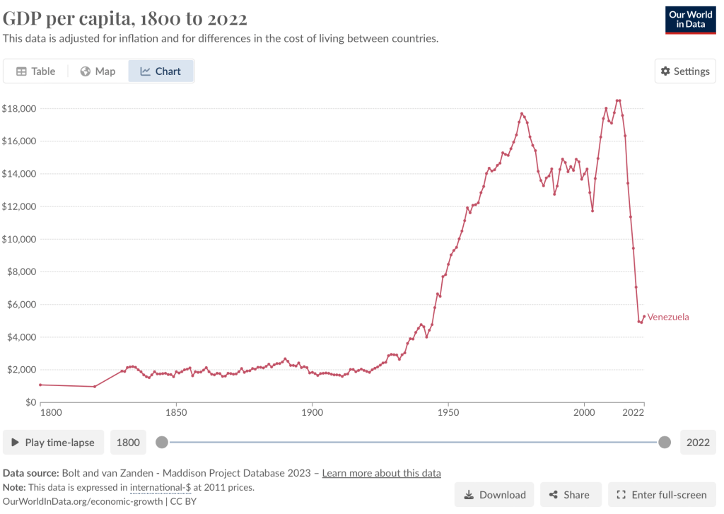 Instead, it has been triggered by the Maduro regime choosing terrible policies that have needlessly and dramatically impoverished the country: