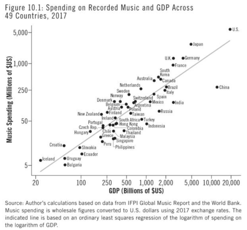 [Music] is a surprisingly small industry, one that would go nearly unnoticed if music were not special in other respects…. less than $1 of every $1,000 in the U.S. economy is spent on music…. musicians represented only 0.13 percent of all employees [in 2016]; musicians’ share of the workforce has hovered around that same level since 1970.