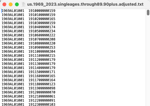 I had no good answer, and the best suggestion I got from others was the CDC SEER data. As so often, the government collected this impressively comprehensive dataset, but only releases it in an unusable format- in this case only as txt files that look like this: