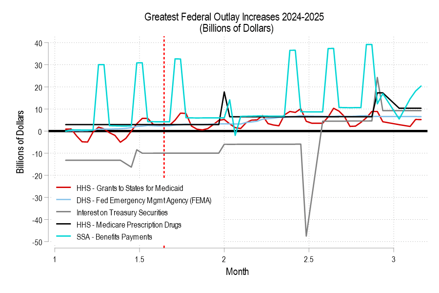 - ** I’ve omitted “International Assistance Programs – Multilateral Assistance” from the list since it ratcheted up throughout 2024 in big discrete jumps. It will be more informative to look at that once we’re further into the year.