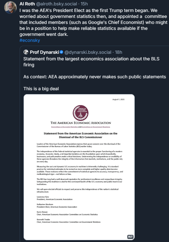 As many of you likely know, the President fired the director of the Bureau of Labor Statistics because he didn’t like that the newest employment numbers painted an unflattering portrait of the US labor market. Fortunately, the US continues to benefit from alternative to government statistics, but make no mistake, the BLS produces the absolute best labor market measurements the world has ever known.