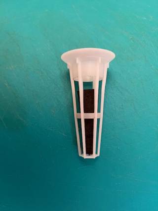 A support basket with a dry (unwetted, unswollen) peat moss grow sponge/plug in it.