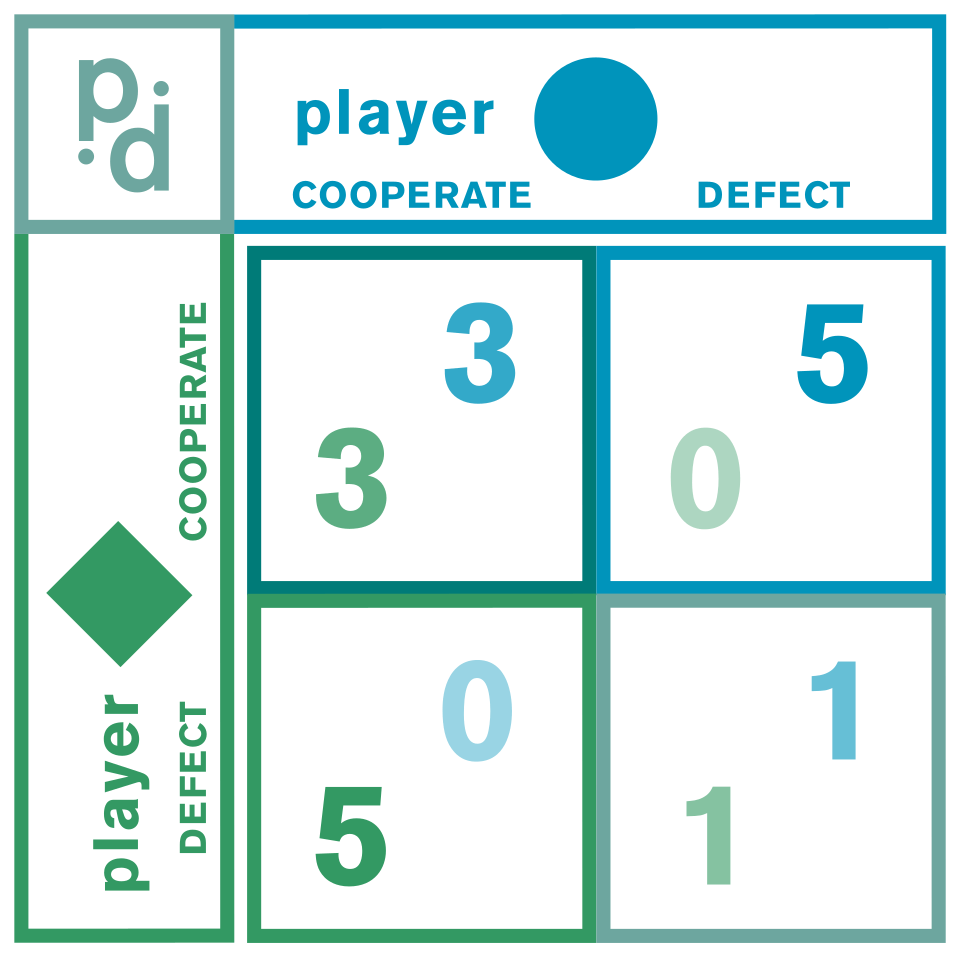 The first and fundamental way to solve the prisoner’s dilemma is to change the payoffs so that each player’s dominant strategy is no longer to defect but instead to cooperate. If you look at the payoff matrix below, the classic problem is that no matter what one player does (Cooperate or Defect), the optimal self-interested response is always to Defect. Before we get into strategies to elicit cooperation, we should start with the most obvious mechanism to evade the dilemma: to care about the outcome experienced by the other. Yes, strong pro-social preferences can eliminate the Prisoner’s Dilemma, but that is a big assumption amongst strangers. Among kin, however, it’s much easier. Family has always been the first and foremost solution. Parents don’t have a prisoner’s dilemma with their children. It doesn’t take a large leap of imagination to see how kin relationships would help familial groups coordinate hunting and foraging or il Cosa Nostra ensuring no one squeals to the cops.