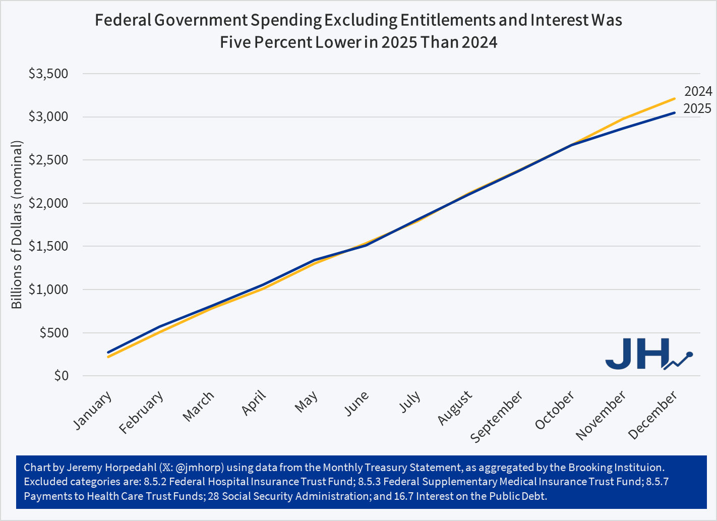 When we look at total spending for Calendar Year 2025, it was about $425 billion higher than 2024, or almost 6 percent higher. So, it seems that by that measure, the cuts that the Trump administration made were too small to overcome the other areas that grew.