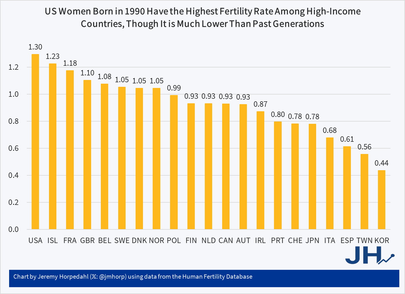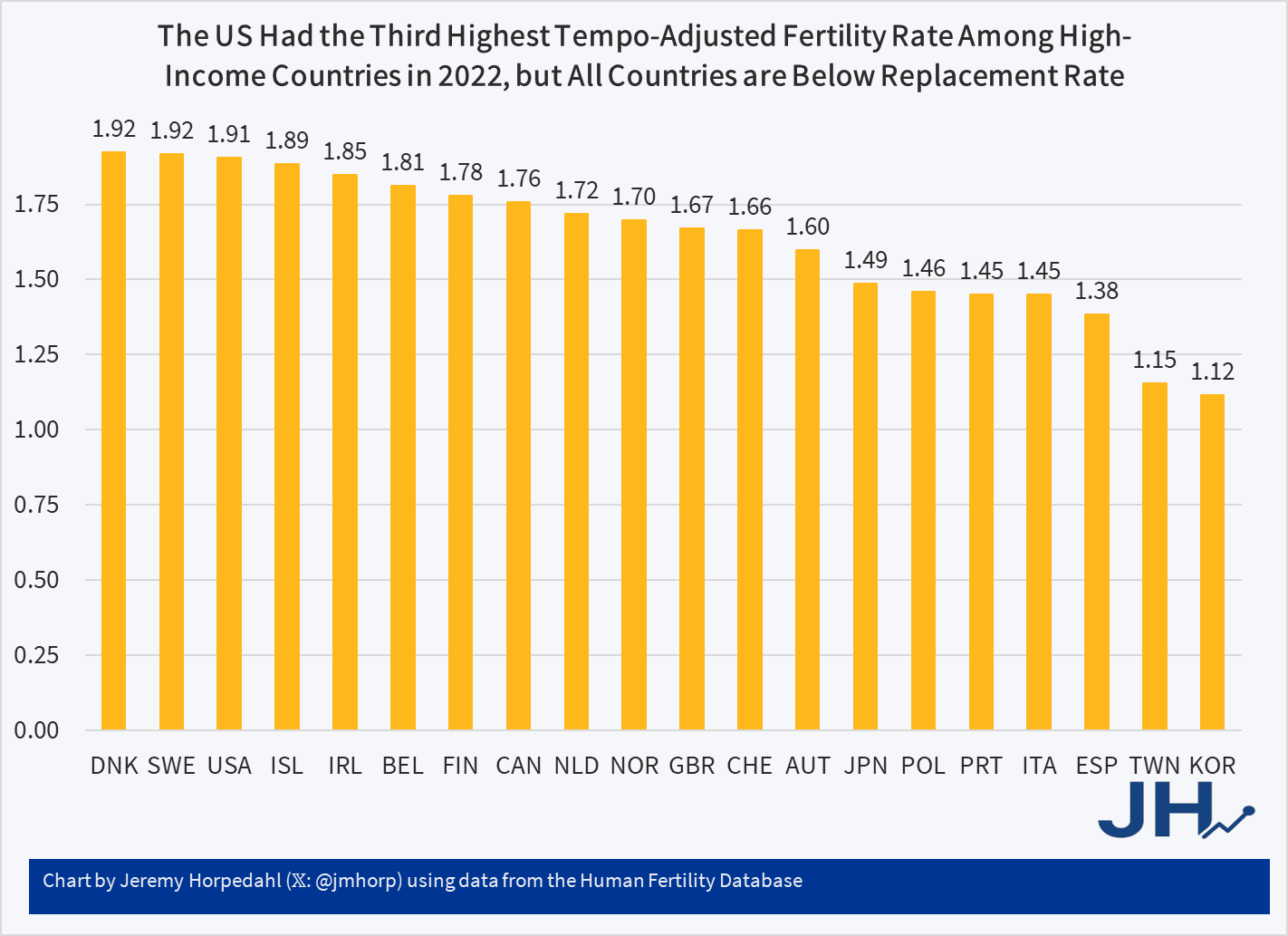Declining fertility rates have been in the news a lot lately, and with good reason. Some countries, such as South Korea, have seen massive declines in fertility rates, and they face huge social problems and population decline resulting from these declining rates. But does the United States face the same problem?