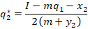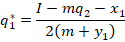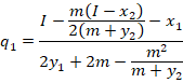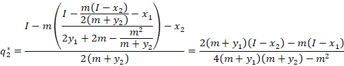 Now that we know how much firm 1 produces, we simply plug it into firm 2’s optimal response to get their level of production. If you graph q1 against any of the parameters, then you’ll see that q1 is linear (affine) in I, x1, & x2 and nonlinear in the other terms.