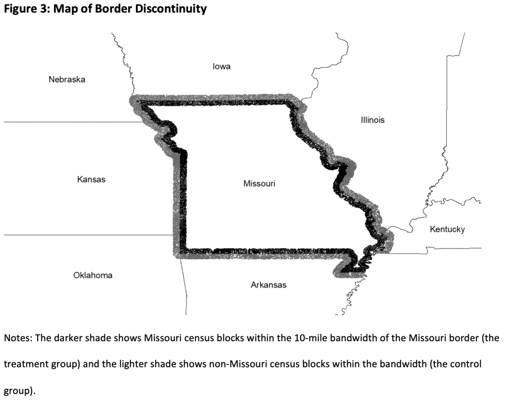 We bring some great data to bear on this; I used the restricted version of the Medical Expenditure Panel Survey to estimate what happened to health spending in Missouri compared to neighboring states, and my coauthors used Equifax data on credit outcomes that lets them compare even finer geographies: