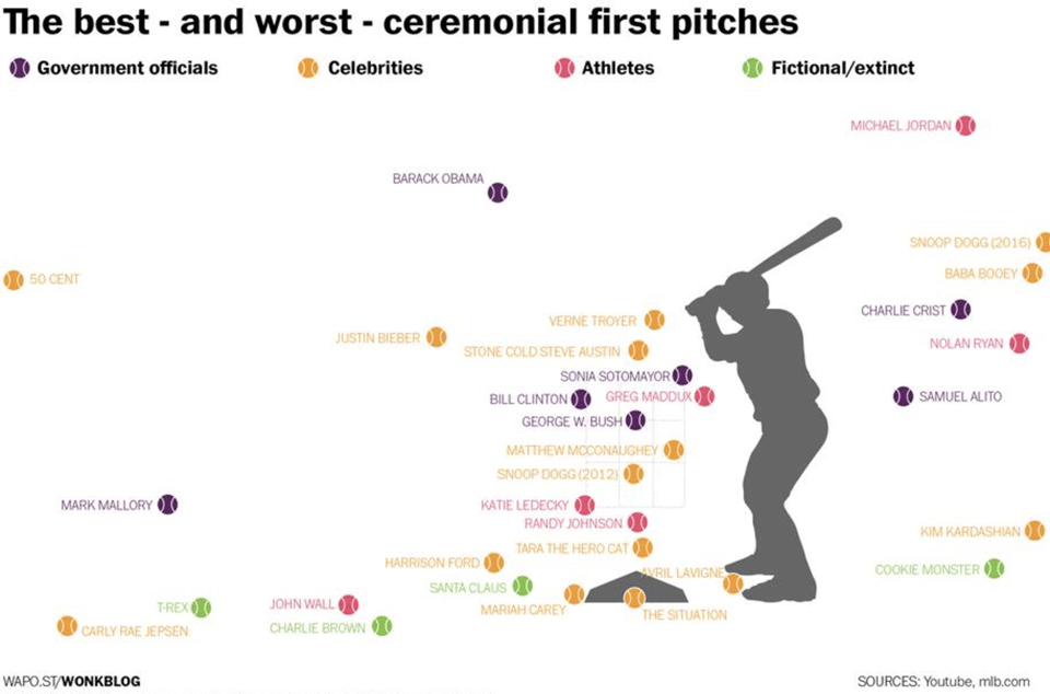 The Washington Post created a fun infographic of celebrity baseball pitches.