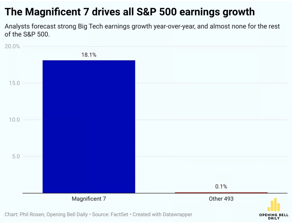 My first couple years of stock picking tended to match the S&P, roughly what you’d expect if markets are efficient and I’m just throwing darts. But more recently so much of the overall return of the market has been driven by just 7 mega-cap stocks, the “Magnificent 7”, that if you don’t own them you are probably underperforming big time.