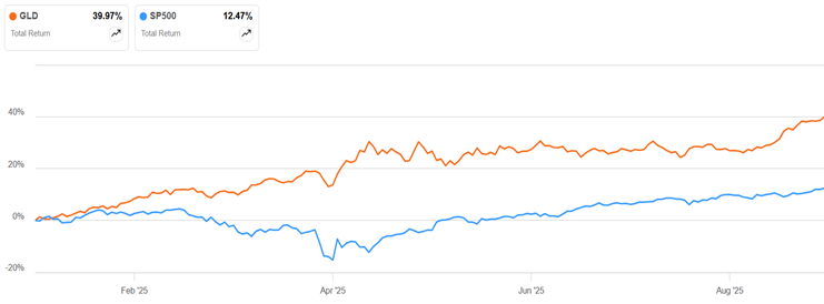 Stocks (e.g., S&P 500) are up 12.5 % year to date. That is pretty good for 9.5 months. But gold has been way better, up 40%: