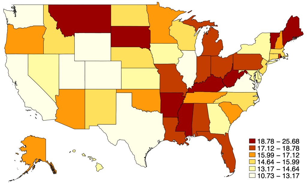 Last week though, I showed how health spending across states looks a lot different if we measure it as a share of GDP instead of in dollars per capita. When measured this way, the correlation of health spending and life expectancy turns sharply negative: