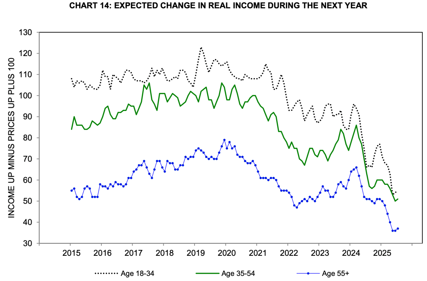 Source: Brynjolfsson, Chandar and Chen 2025.Source: Michigan Consumer Survey