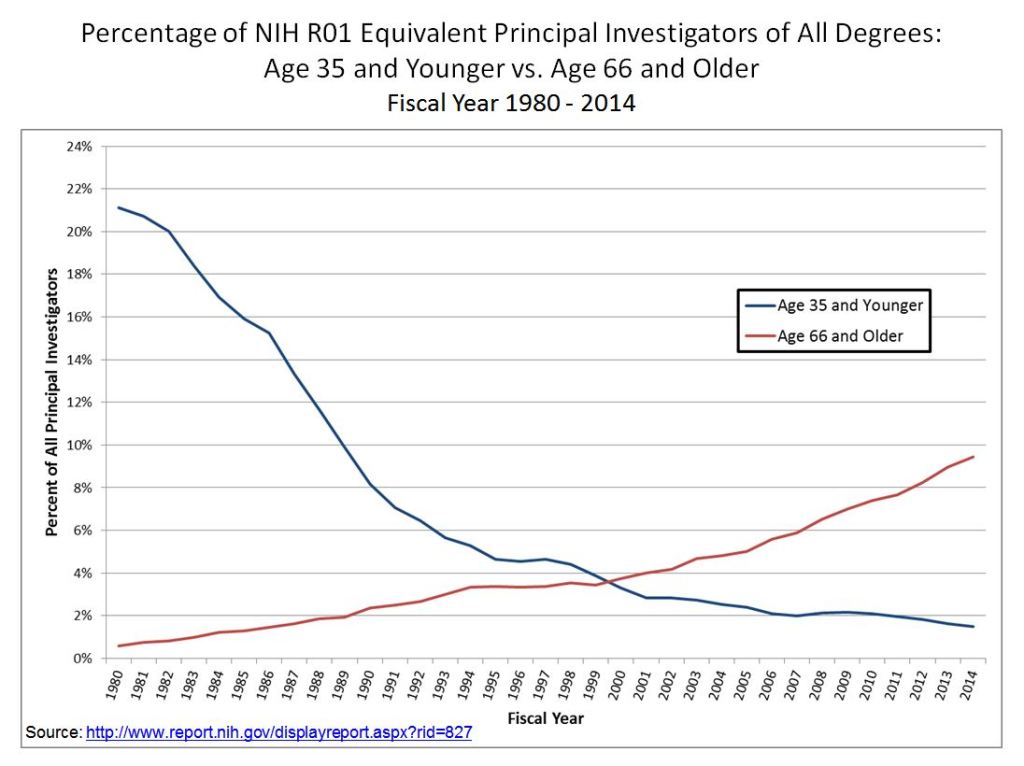 Of course, it also helps to get to know people at the funders and to become more senior yourself. It’s not surprising that my first major grant is coming from IHS given that I’ve been involved with them in all sorts of ways since going to a Liberty & Society seminar way back in 2009. Most funding goes to more senior people who have more connections, knowledge, and proven experience. This is extreme at perhaps the largest funder of research, the National Institutes of Health, where less than 2% of funded principal researchers are under age 36.