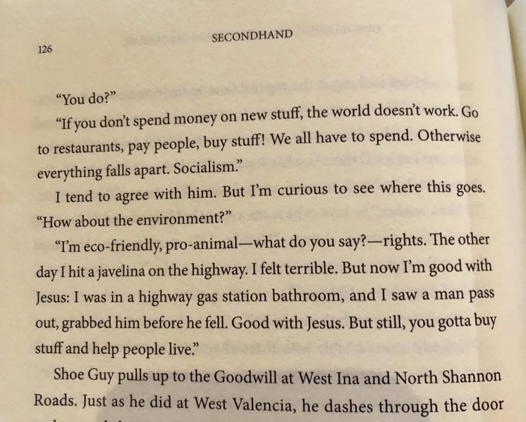 The author of Secondhand, Adam Minter, simultaneously appreciates the value created by large “impersonal” markets and also paints colorful pictures of the individual people involved. He has respect for individuals in the system who, using local knowledge, extract all the value out of what rich people consider to be trash. Minter sits in the seat of Adam Smith.