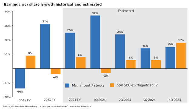 Fuller also makes the case that the good news on earnings has spread recently from the so-called Magnificent Seven big tech stocks (Microsoft, Apple, Nvidia, etc.) to the broader market. This should serve to support further price rises in the broad indices: