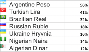 Since January 2020, here are the countries where the US dollar has gained the most vs the local currency: