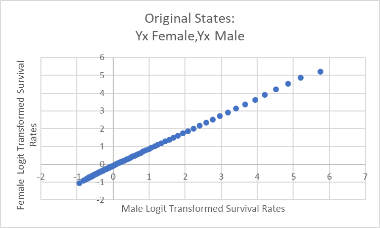 I mean, so what? Why does it matter what kind of functional form survival rates follow? It matters because plotting any two logit functions against one another yields a straight line. Again, so what? Well! I’m glad you asked! If we have two sets of survival rates, say from urban and rural populations, then we can calculate their weighted average according to some target population. Getting these urbanity details right affects the rate of survival and the shape of the logistic function. If there is some other population out there about whom we know the urbanity details and little else, then we can estimate their life table! DON’T YOU SEE? We can estimate births, deaths, and survival rates with much less information than we had for the initial life table construction.